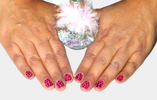 Nail art uses handstroke designs and can be made of Shellac naill polish also giving it a long lasting finish.